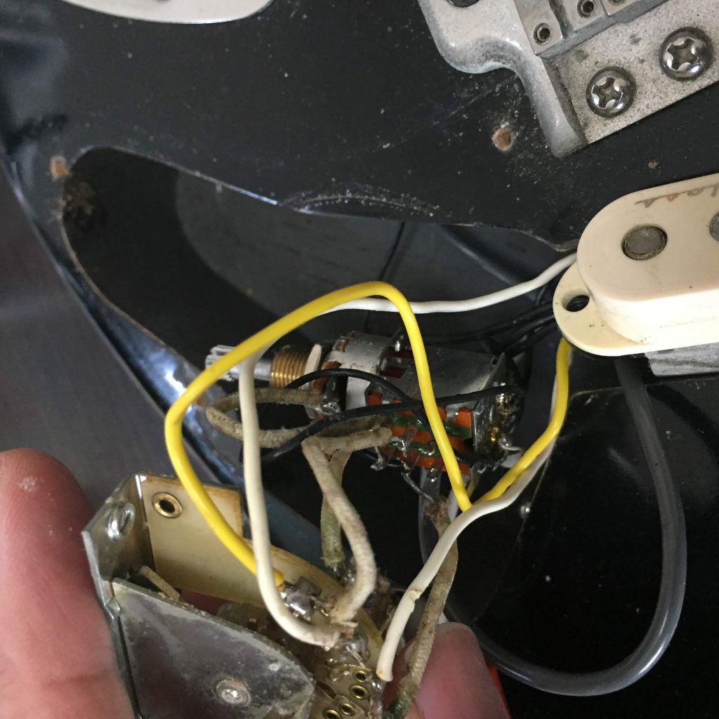 それぞれ簡単に説明すると、自分の使っていたストラトですが、基本的には普通のストラトと同じくワンボリューム、ツートーンでした。