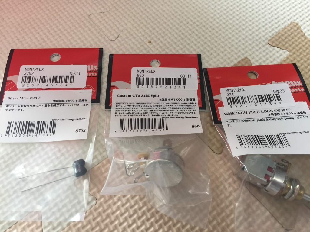 というか、今は違うのですが、ノイズレスピックアップを購入するとボリュームポット(500KΩ)、トーン(1MΩ)x2個、コンデンサ、抵抗が付いていたようです。